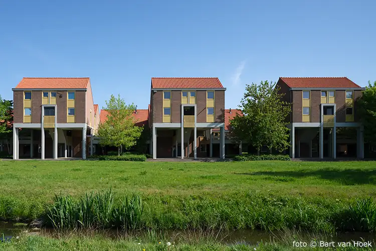 Blom ontwierp drie verschillende basistypen, die zijn gecombineerd tot vijf verschillende woningtypen. Deze woningen zijn ruggelings tegen elkaar geplaatst. Deze stroken zijn met een kleine overlap tegen elkaar geplaatst, zodat tussen de woningen ruimte is voor patio's. Met dit woningbouwproject werd een woningdichtheid bereikt van zo'n 100 woningen per hectare, dit is vier keer zo hoog als in een normale woonwijk.