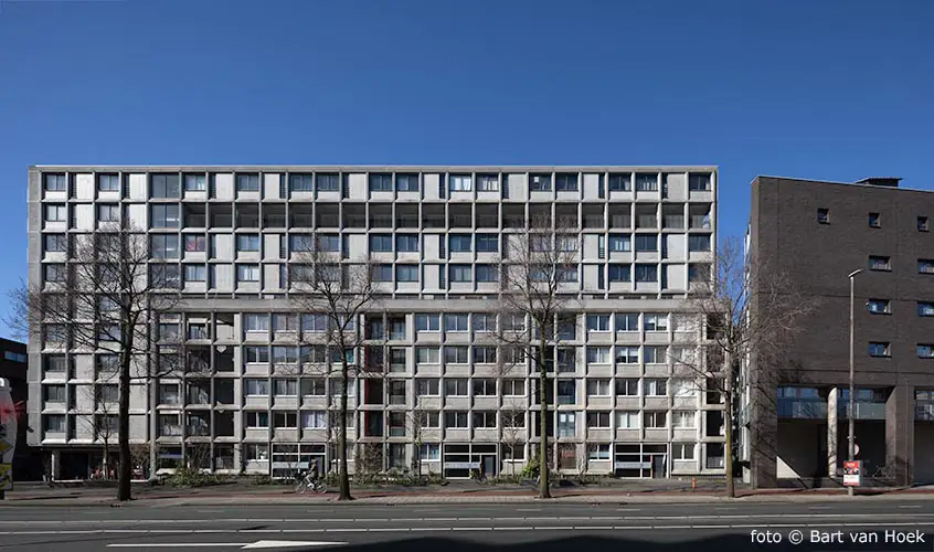 Dit wooncomplex met 205 woningen, praktijkruimten en een ondergrondse parkeergarage tussen de Nieuwe Prinsengracht en Nieuwe Keizersgracht aan de Weesperstraat bestaat uit verschillende bouwdelen.