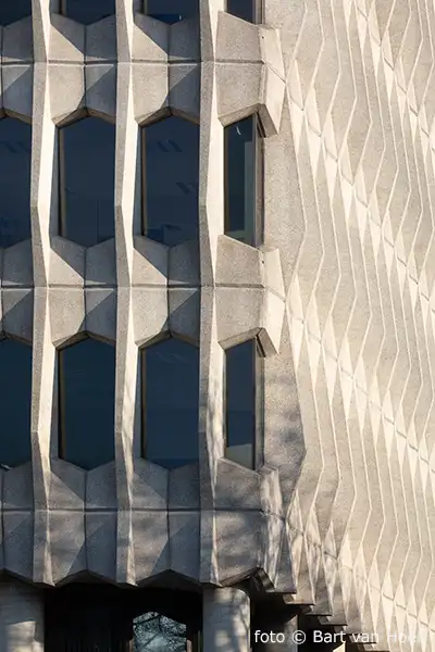 Het stadskantoor is opgebouwd uit een rechthoekig 5 verdiepingen tellend kantoordeel en een laagbouw gedeelte. Het rechthoekige kantoorgebouw valt op door prefab betonnen geveldelen van de bovenste 4 lagen. Deze elementen zijn zo ontworpen dat ze direct invallend zonlicht voorkomen. Ook in de laagbouw keert beton terug, deze is gedeeltelijk uitgevoerd in betonsteen.
