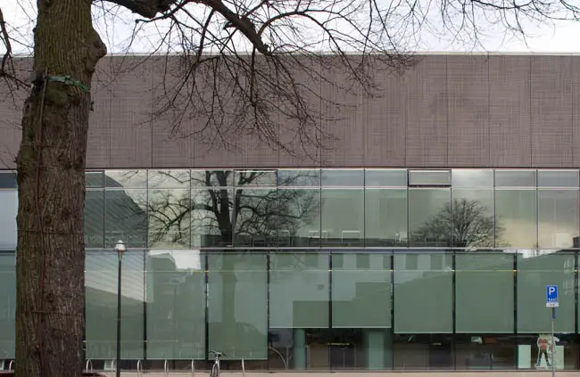 De richting van de gevels van de binnenplaats, is afgeleid uit de richting van het Huis voor Schone Kunsten. De museumruimten bevinden zich op kelderniveau, onder de bult op de binnenplaats. Deze tentoonstellingszaal van 1.900 m² wordt overspannen door tot 5 meter hoge en 35 meter lange liggers.