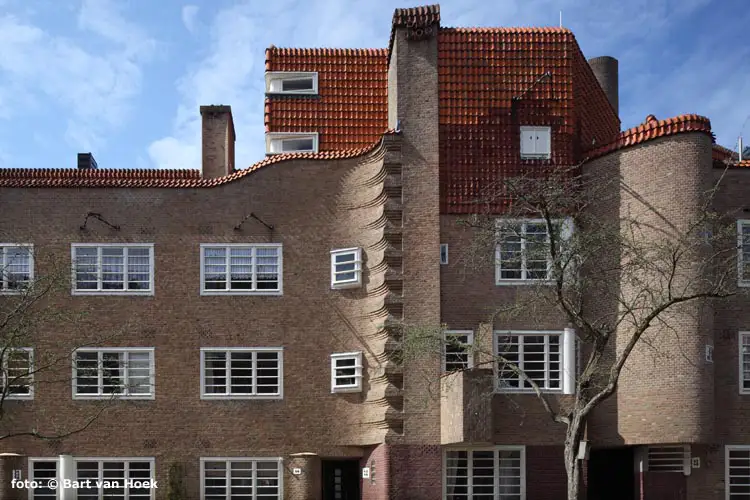 Met zijn kenmerkende vormgeving met golvende bakstenen gevels en daken en horizontale raamstroken is dit woningbouwcomplex een van de hoogtepunten van de Amsterdamse School.