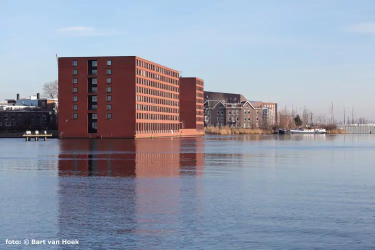 Dit project bestaat uit twee woongebouwen bij de entree van het Java- en KNSM-eiland. Ten oosten van de weg is het vierkante Hofhaus gerealiseerd met restaurant en studioruimten op de begane grond. Aan de overzijde is in het water het langwerpige en 8 verdiepingen hoge Langhaus gerealiseerd. De op het oog regelmatig geplaatste raamopeningen verspringen 1 baksteen ten opzichte van elkaar.