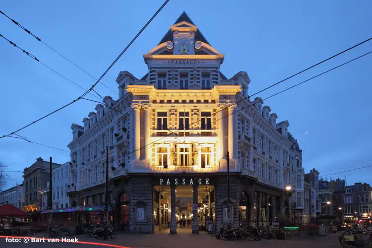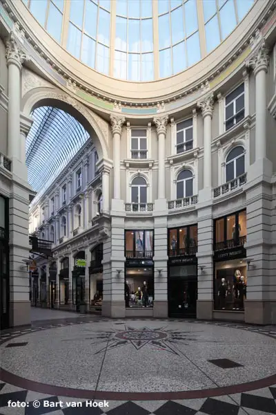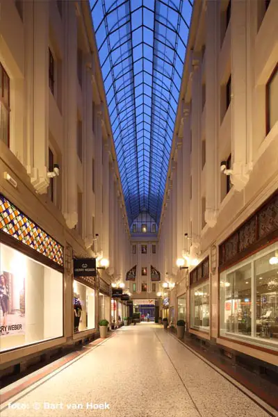 Deze overdekte winkelpassage verbindt de Spuistraat, Buitenhof en de Hofweg. Het oudste gedeelte is ontworpen in een neorenaissance stijl. Het complex heeft vier verdiepingen. In de oorspronkelijke indeling was boven de winkelruimte aan de passage de woonruimte van de winkelier gesitueerd. Bij een verbouwing zijn de verdiepingen met elkaar verbonden door 2 loopbruggen over de passage.