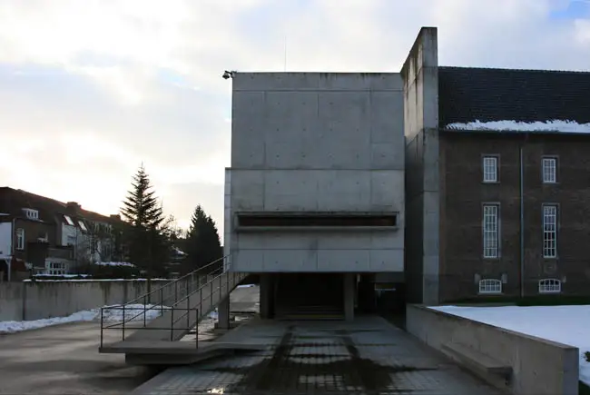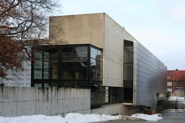 Het gebouw heeft een kelder, begane grond en twee verdiepingen. De gevels zijn samengesteld uit in het werk gestort schoon beton, grijze (geperforeerde) roestvaststalen platen en glazen puien.