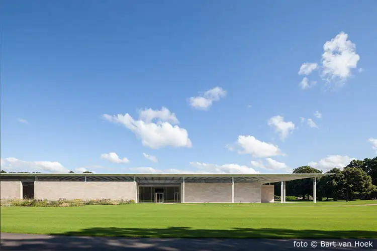 Naast Huis Voorlinden, een ontwerp van de Britse architect R.J. Johnston, is dit museum voor de Caldic collectie gebouwd. Het op Renzo Piano's geinspireerde Fondation Beyeler museum met bibliotheek, auditorium en boekwinkel meet 116 bij 31 meter. Door 115.000 schuin afgesneden aluminium buizen in het dak valt licht indirect in de museumruimten binnen. Het stalen museumgebouw heeft gesloten gevels van Italiaans travertin en verdiepingshoge glazen puien.
